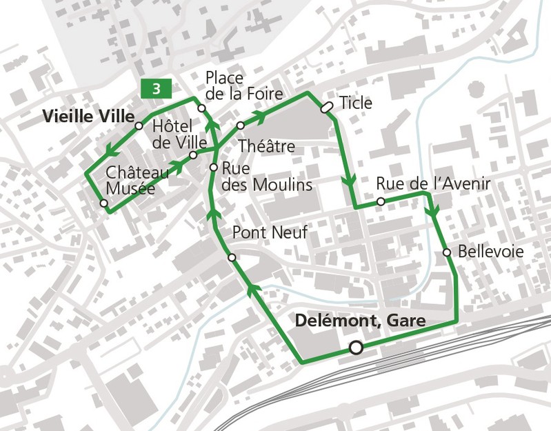 Depuis le lundi 13 décembre, une nouvelle ligne de bus, la ligne 3, circule en Ville de Delémont, et participe au renforcement de la desserte en transports publics et à l’attractivité commerciale du Centre-ville. La navette relie le quartier de la Gare à la Vieille Ville de 7h30 à 18h00 du lundi au samedi, à raison d’un passage toutes les 15 minutes. Elle fonctionne selon un système de boucle en continu.